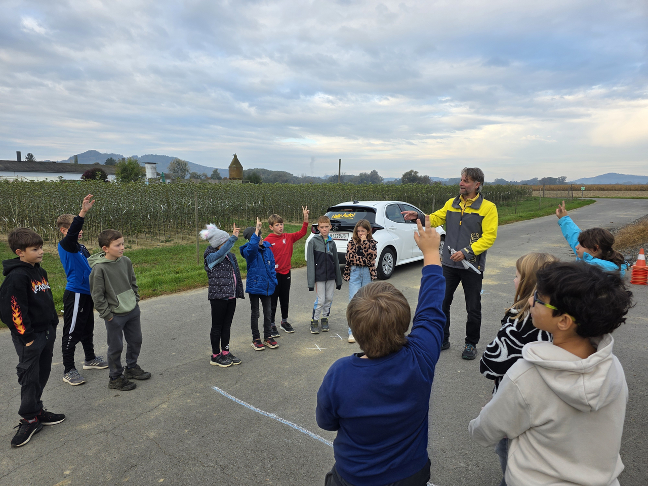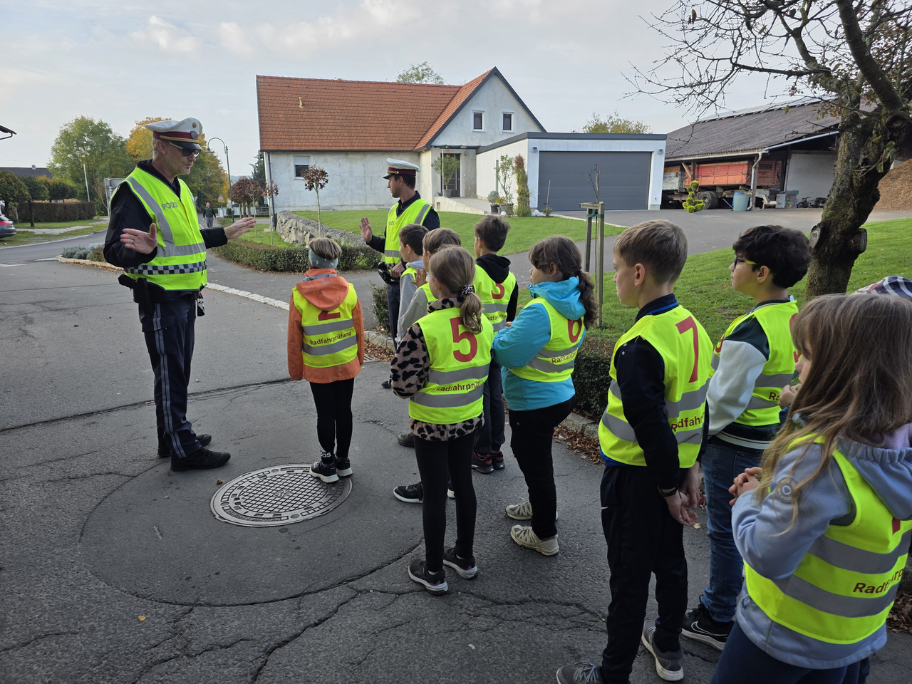 Am 14. Oktober wurden die Schülerinnen und Schüler der 4. Schulstufe beim Üben für die Radfahrprüfung unterstützt und bekamen dafür Besuch von der Polizeidienststelle Riegersburg. Gemeinsam wurde das Fahren auf der Straße geübt und es wurde ihnen die Gefahr des Toten Winkels nähergebracht.