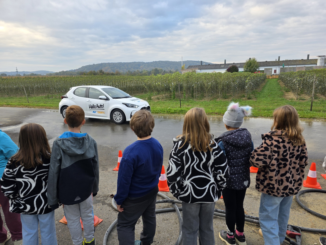Die Schülerinnen und Schüler der 3. und 4. Stufe nahmen an der Verkehrssicherheitsaktion "Hallo Auto" des ÖAMTC teil. Ihnen wurde durch gemeinsames Erarbeiten aufgezeigt, dass ein Auto selbst bei einer Notbremsung nicht sofort zum Stillstand kommen kann, was alle Kinder anschließend sogar selbst ausprobieren durften.